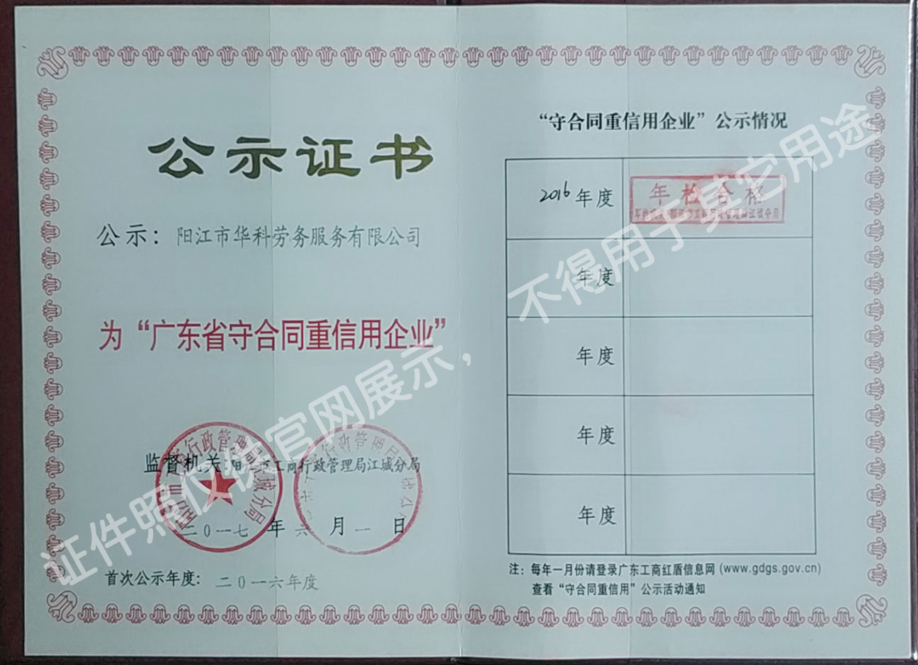 首批獲得廣東省人力資源廳、陽(yáng)江市勞動(dòng)和社會(huì)保障局頒發(fā)人力資源許可證的合法單位